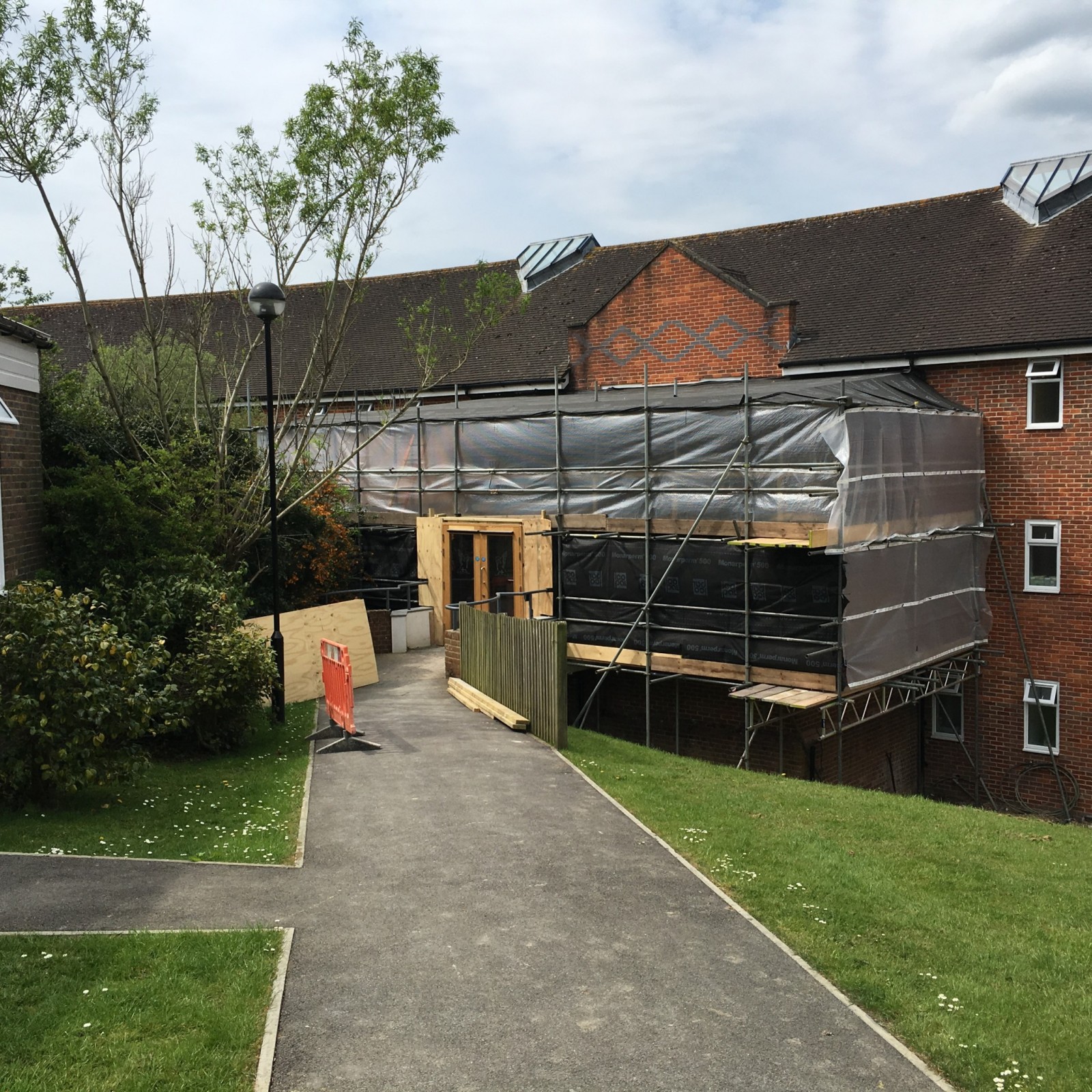 Demolition of the existing front entrance is now complete and the construction of the new new steel frame has commenced. This area will form a new house main entrance, enhanced common room and social spaces.